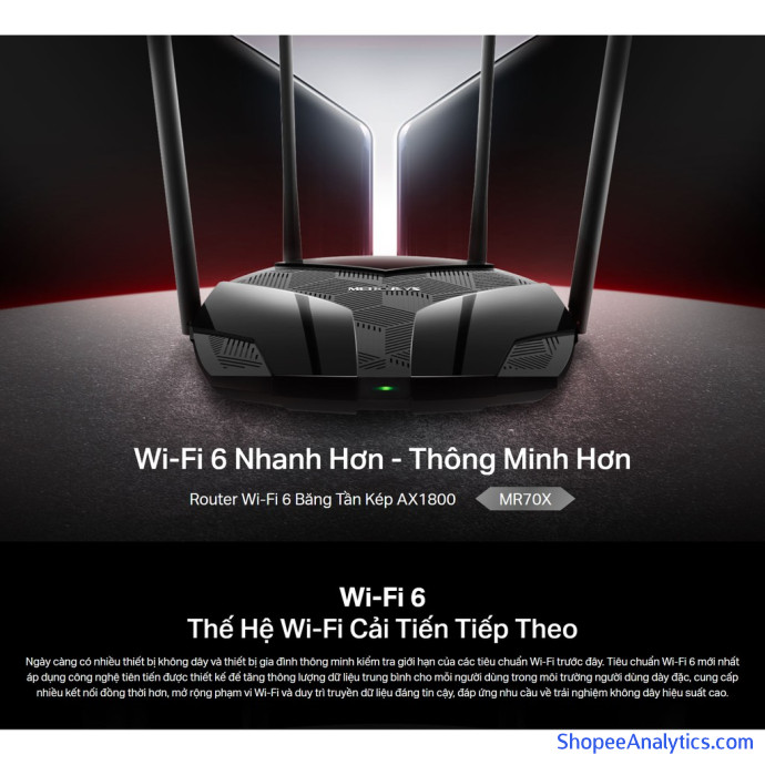 🏷️ BỘ PHÁT WIFI MERCUSYS MR70X WIFI 6 BĂNG TẦN KÉP AX1800