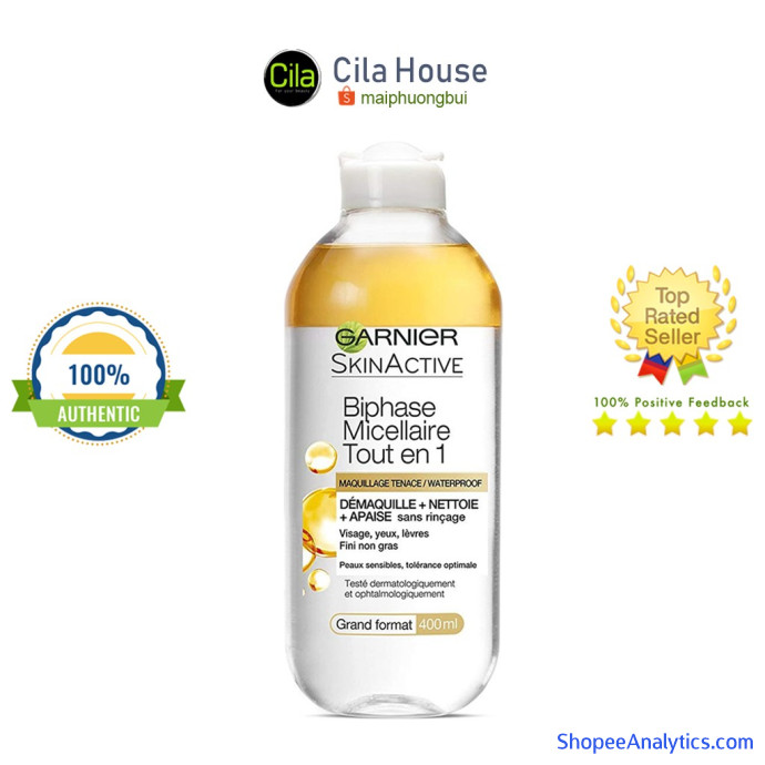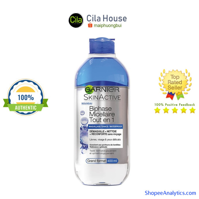 Tổng thể Nước tẩy trang Garnier Pháp 400ml - Cila house được đánh giá trung bình 4.96/5 điểm dựa vào 2,290 đánh giá qua 5,537 lượt mua hàng (Cập nhập ngày 15/10/2021).