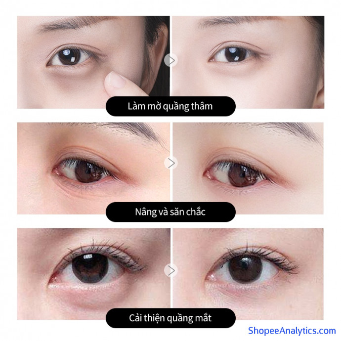 Công dụng: Cải thiện quầng thâm và bọng mắt, nâng cơ và làm săn chắc vùng da quanh mắt