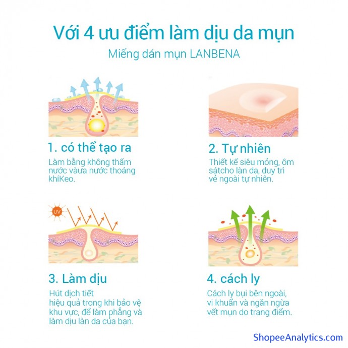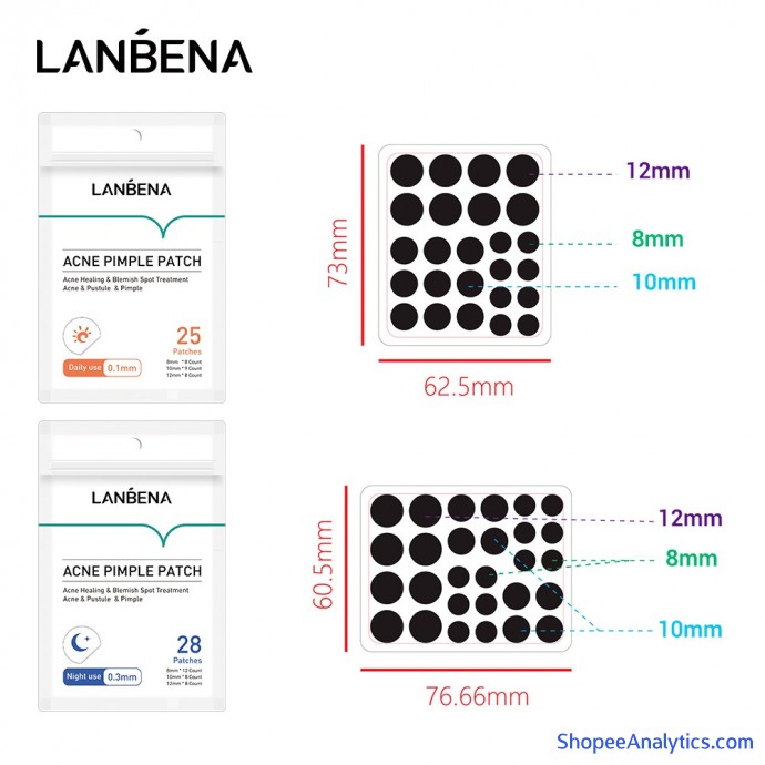Tên sản phẩm: Miếng dán hỗ trợ giảm mụn LANBENA sử dụng ngày và đêm 5g