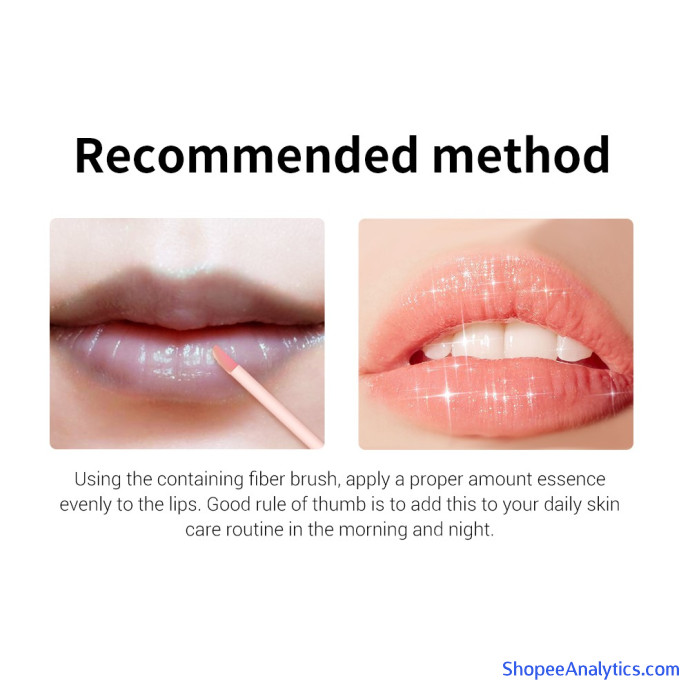 Sử dụng cọ sợi, thoa đều một lượng tinh chất vừa đủ lên môi. Nguyên tắc là nên thêm sản phẩm này vào thói quen chăm sóc da hàng ngày của bạn vào buổi sáng và buổi tối.