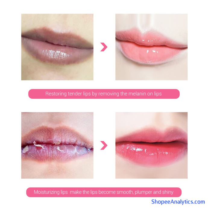 Công dụng: Giảm sắc tố môi; tạo lớp dưỡng ẩm trên bề mặt môi, khóa ẩm, giúp môi trở nên mịn màng, căng mọng và bóng mượt, mang lại đôi môi hồng hào cho bạn.