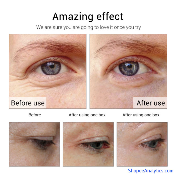 Tác dụng: Bổ sung dưỡng chất cho mắt, Làm giảm độ mỏng của bọng mắt, Làm săn chắc da mắt, Đánh tan sự mệt mỏi của mắt, Cải thiện quầng thâm quầng mắt