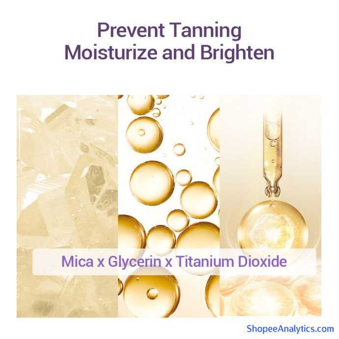 Kết cấu dạng nước, nhẹ và không dính, với khả năng chống nắng cao SPF50 +/PA +++, có thể cách ly làn da một cách tàng hình khỏi khói bụi trong không khí và tác hại của lớp trang điểm. Chứa thành phần chiết xuất rong biển và các tinh chất sản xuất bởi công nghệ cải tiến, kem chống nắng này có thể giúp làm đều và sáng màu da đồng thời che đi các vết mụn, ửng đỏ hoặc da vàng đỏ trở nên tươi sáng.