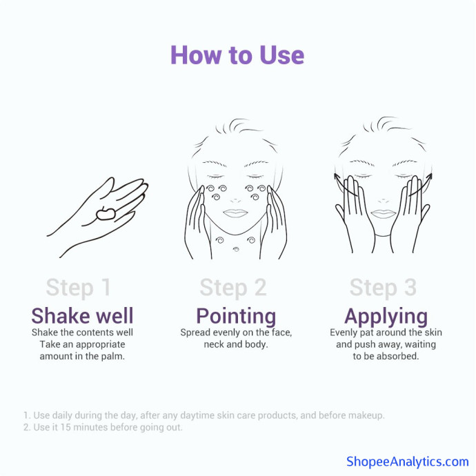1. Sử dụng hàng ngày, sau bất kỳ sản phẩm chăm sóc da ban ngày nào, và trước khi trang điểm.