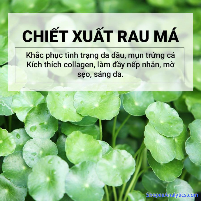 – 72% chiết xuất chính từ rau má trên đảo Madagascar có công dụng tuyệt vời trong giảm mụn và dưỡng da.