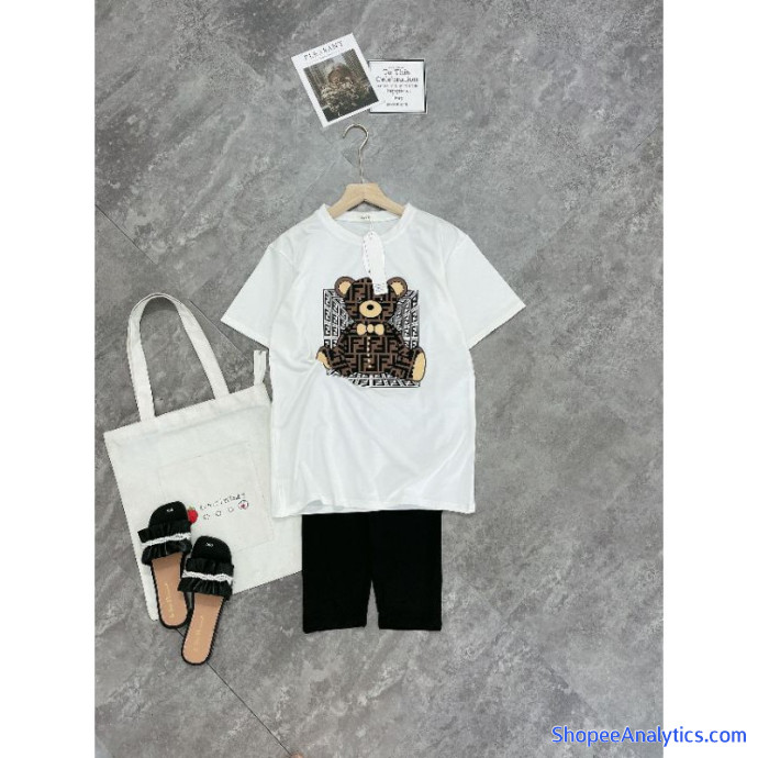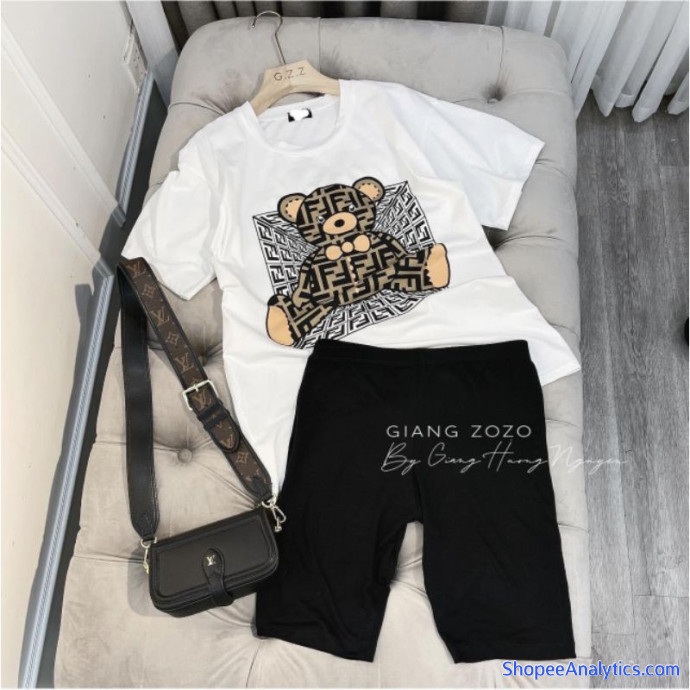 Bộ gấu thụng mix quần legging lửng giãn
