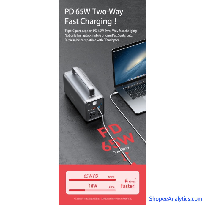 USB-C Type-C input/output: PD3.0 (5V/3A, 9V/3A, 12V/3A, 15V/3A, 20V/3.25A, 65W max)