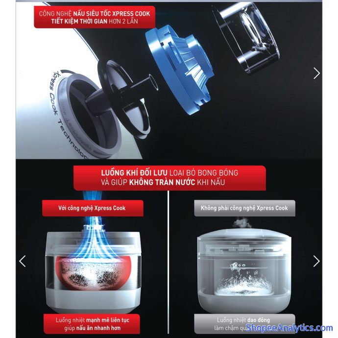 - Công nghệ điện từ Fuzzy Xpress, đối lưu không khí từ ngoài vào, loại bỏ bong bóng khi khi nấu, giúp nấu nhanh hơn gấp 2 laanfnooif thông thường