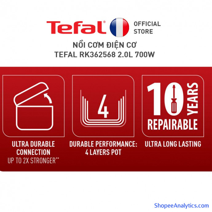 Vì đây là sản phẩm thương hiệu Tefal được bán từ gian hàng chính hãng nên giá sẽ cao hơn so với giá các sản phẩm khác.