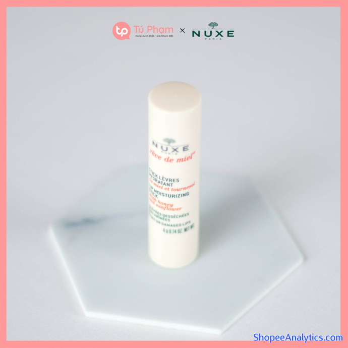 Son dưỡng môi Nuxe Reve de Miel Lip Balm có thành phần chủ yếu là các chiết xuất từ tự nhiên giúp cung cấp độ ẩm, nuôi dưỡng môi căng mọng, mềm mịn và không còn tình trạng môi bị khô hay nứt nẻ. Đây là dòng sản phẩm bán chạy nhất của hãng và cũng là dòng son dưỡng môi được yêu thích suốt nhiều năm liền.