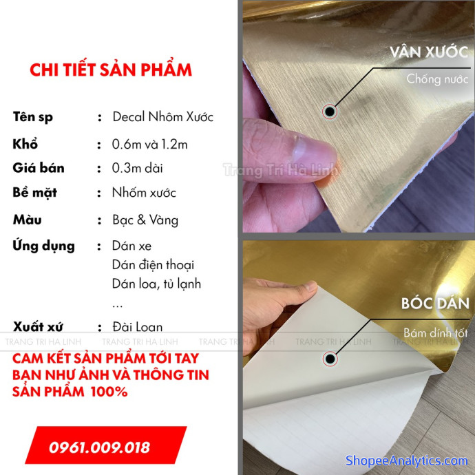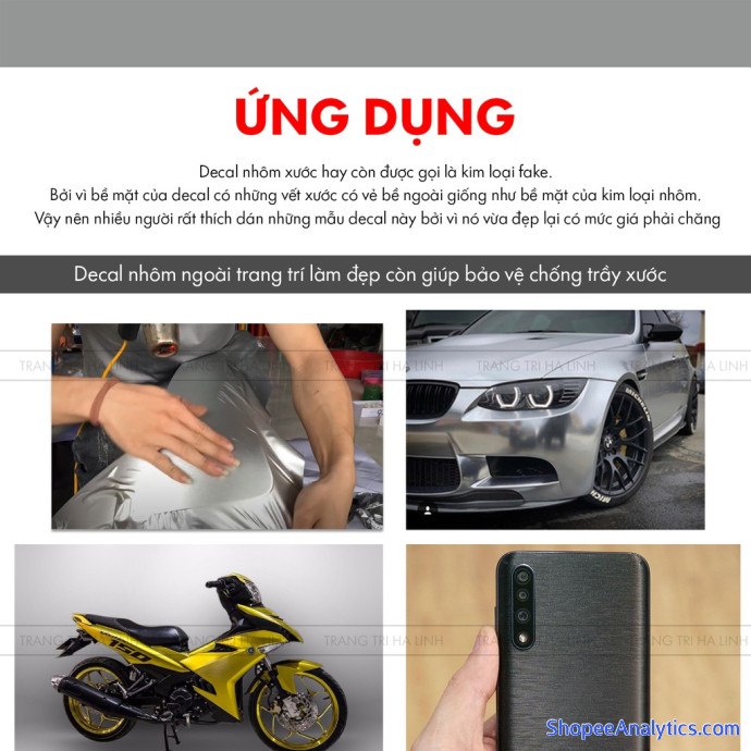 Tổng thể Decal nhôm xước dán xe 3d màu bạc và vàng - Trang Trí Hà Linh được đánh giá trung bình 4.94/5 điểm dựa vào 33 đánh giá qua 138 lượt mua hàng (Cập nhập ngày 14/10/2021).