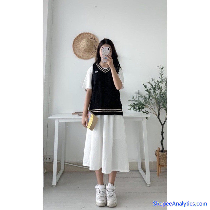 • Chân váy có 3 màu cho các nàng lựa chọn nè: Đen/ Trắng/ Nâu