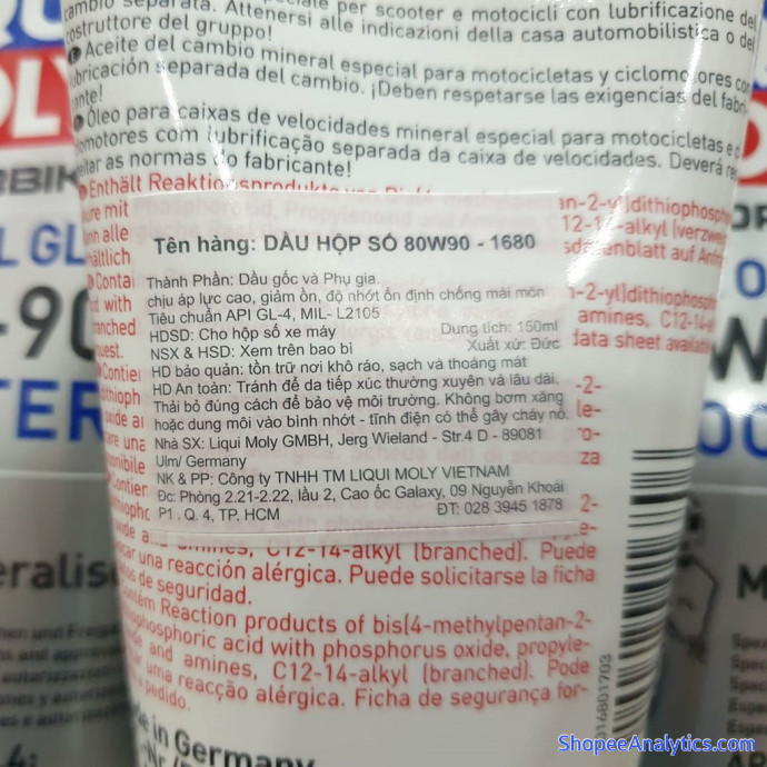 Tổng thể Nhớt LápNhớt Hộp Số Xe Tay Ga Liqui Moly 80w90 150ml – 1680 - Motorbike Gear Oil Gl 4 80w-90 Scooter được đánh giá trung bình 5.00/5 điểm dựa vào 27 đánh giá qua 138 lượt mua hàng (Cập nhập ngày 11/04/2021).
