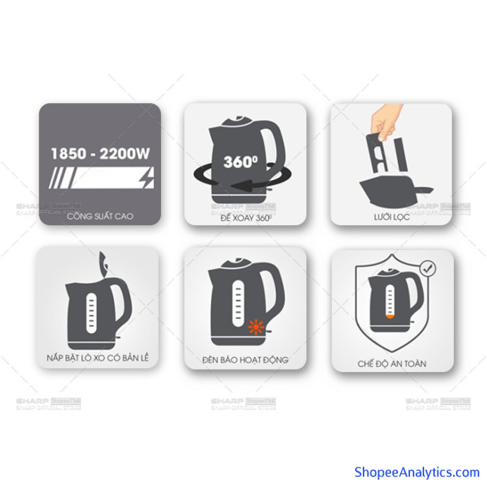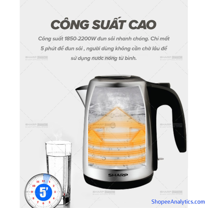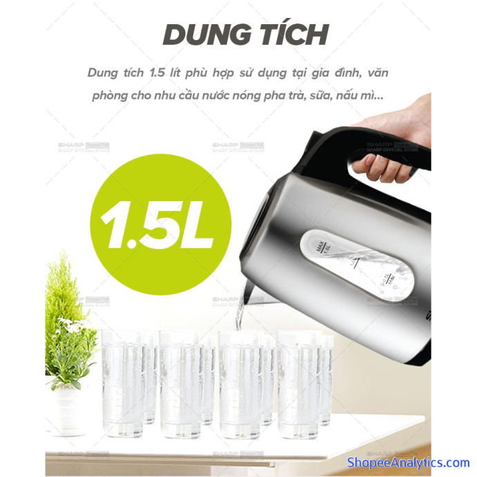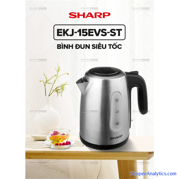 Bình Đun Siêu Tốc 1.5 Lít Sharp EKJ-15EVS-ST [Vạch báo mực nước: hai bên, Cảm biến nhiệt: FADA] - Bảo Hành Chính Hãng 12 Tháng