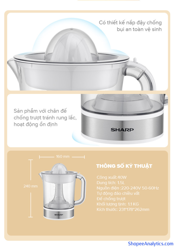• Máy Vắt Cam Sharp EJ-J415-WH Dung Tích 1.5L