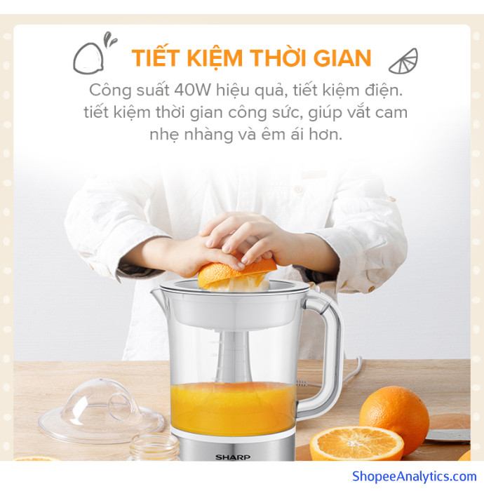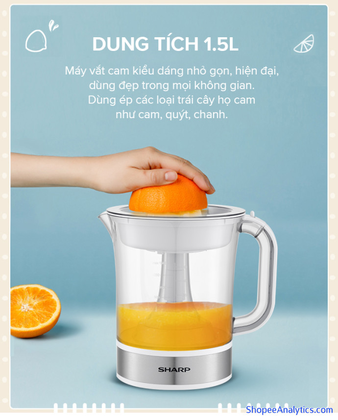 • Công suất 40W, dung tích 1.5L vắt được nhiều nước cam