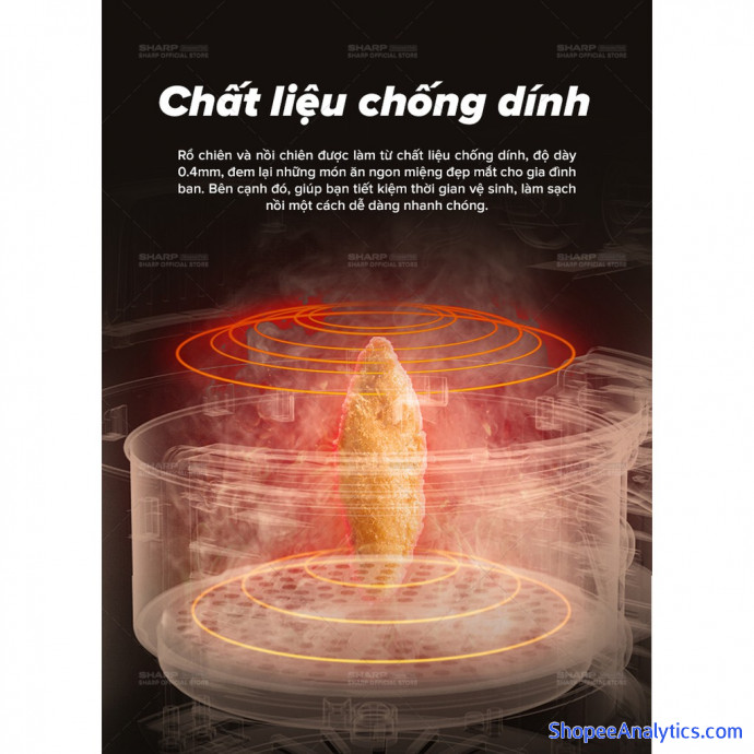 Chất liệu: Rổ chiên + Nồi chiên: chất phủ chống dính/ Độ dày: 0.4 mm