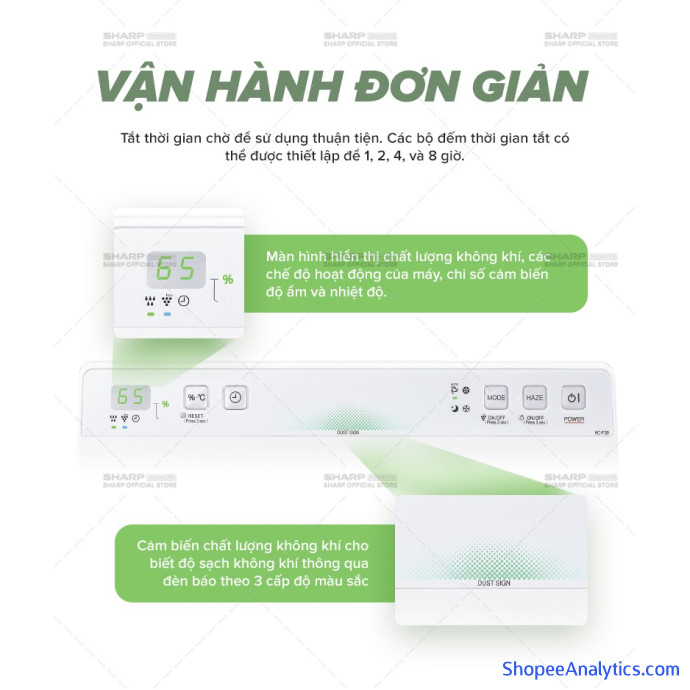 • Đèn báo chất lượng không khí, cảm biến thông minh, hẹn giờ linh hoạt, tiết kiệm điện