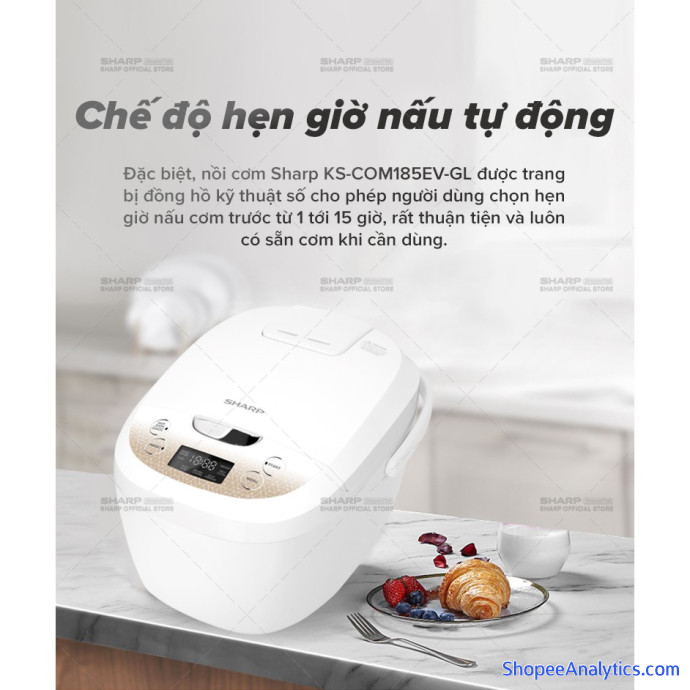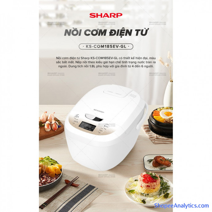 Nồi cơm điện tử Sharp 1.8L KS-COM186EV-GL Công Suất 830W - Hàng Chính Hãng Bảo Hành 12 Tháng