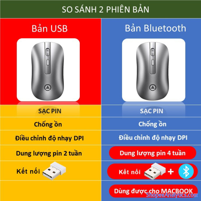 • 2 chế độ kết nối, dùng cổng USB 2.4G, Bluetooth
