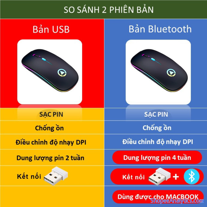 • Phiên bản 2: Sạc pin + Kết nối cổng USB 2.4G + Kết nối cổng Bluetooth