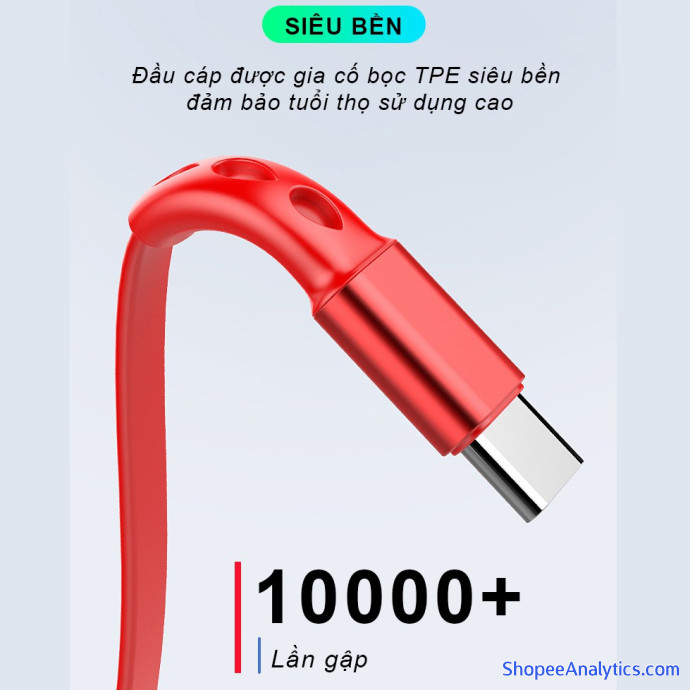 • Đầu cáp được gia cố bọc TPE siêu bền đảm bảo tuổi thọ cao 10000 lần gập