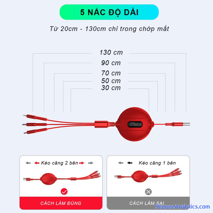 • Cáp đa năng 3 đầu dây rút 2 bên
