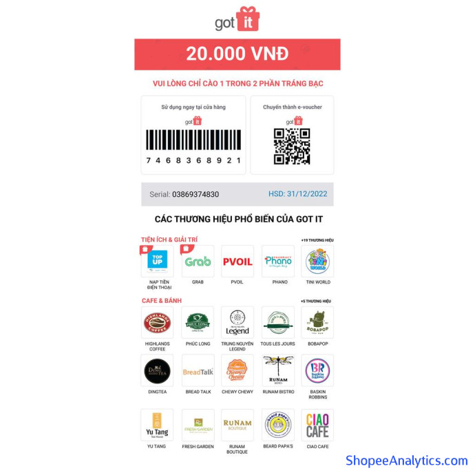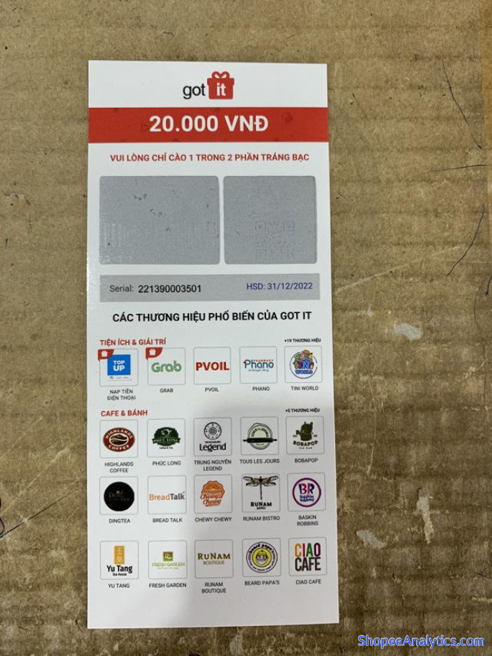 *Hạn sử dụng: được in trên sản phẩm (có 2 lô Voucher giấy Got It và được giao ngẫu nhiên)