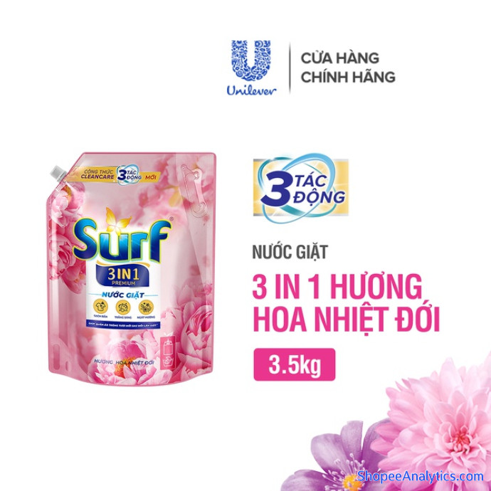 SURF NƯỚC GIẶT HƯƠNG HOA NHIỆT ĐỚI 3.5KG - SẠCH THƠM NGẠI GÌ MƯA NẮNG!