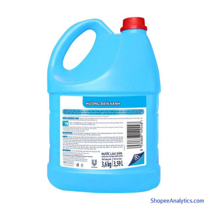Tổng thể Nước Lau Sàn Sunlight Hương Biển Xanh Loại Bỏ 99,9% Vi Khuẩn 3.6KG được đánh giá trung bình 4.90/5 điểm dựa vào 135 đánh giá qua 397 lượt mua hàng (Cập nhập ngày 17/10/2021).