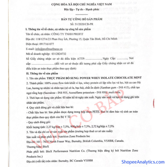 - Không chứa Lactose và Gluten.