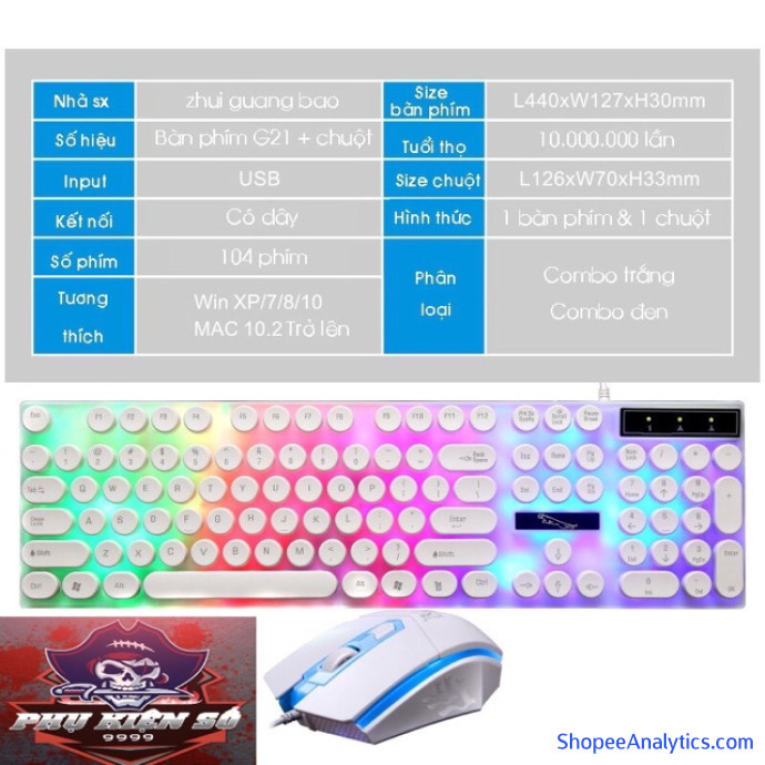 Tổng thể Bàn Phím tròn Kèm Chuột Máy Tính Giả Cơ Con Báo Có LED 7 Màu Ấn Tượng G21 Bền Đẹp Giá Rẻ được đánh giá trung bình 4.82/5 điểm dựa vào 367 đánh giá qua 856 lượt mua hàng (Cập nhập ngày 15/10/2021).