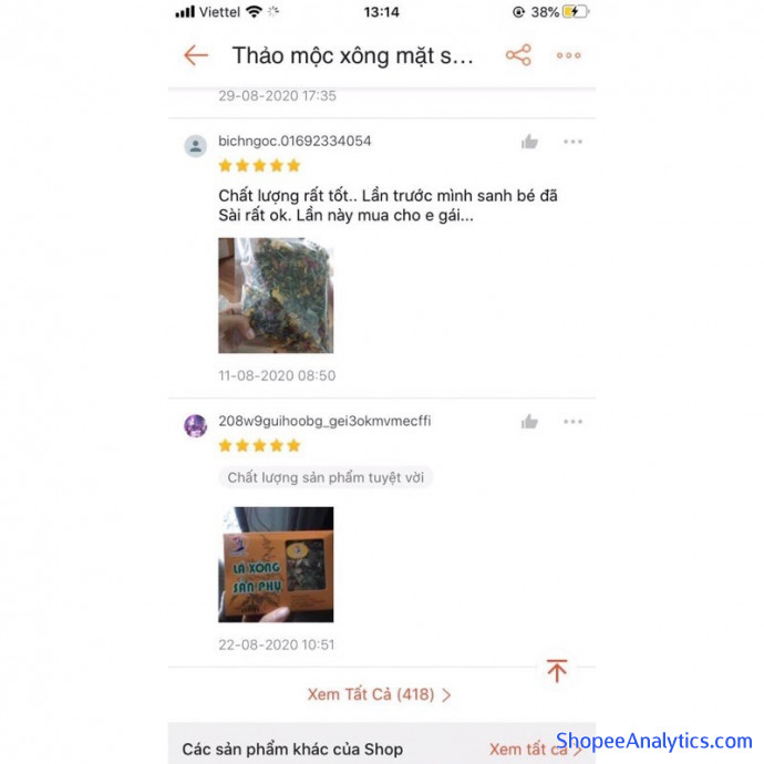 Tổng thể THẢO MỘC XÔNG MẶT (HANDMADE) được đánh giá trung bình 4.98/5 điểm dựa vào 1,469 đánh giá qua 3,830 lượt mua hàng (Cập nhập ngày 05/09/2021).