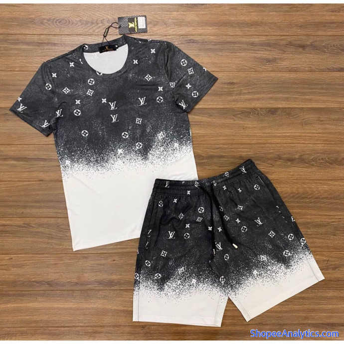 Bộ Nam Hè-Bộ Nam Thể Thao Play Boy Bộ Loang 3D Lv Chất Thun Co Dãn 4 Chiều Đen Xanh Phong Cách