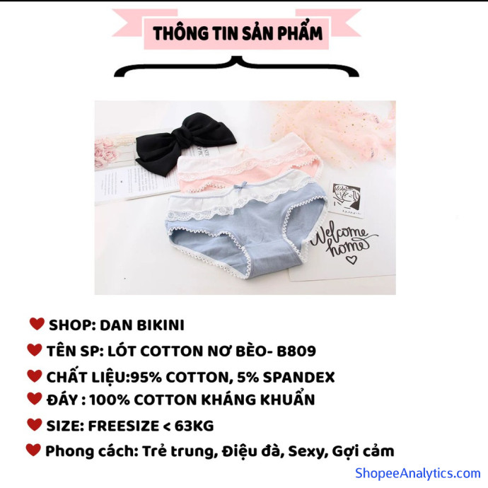 Tổng thể Quần Lót Nữ Cotton 100% kháng khuẩn phối viền ren đính nơ điệu đã mã B809 được đánh giá trung bình 4.93/5 điểm dựa vào 4,541 đánh giá qua 11,391 lượt mua hàng (Cập nhập ngày 17/10/2021).