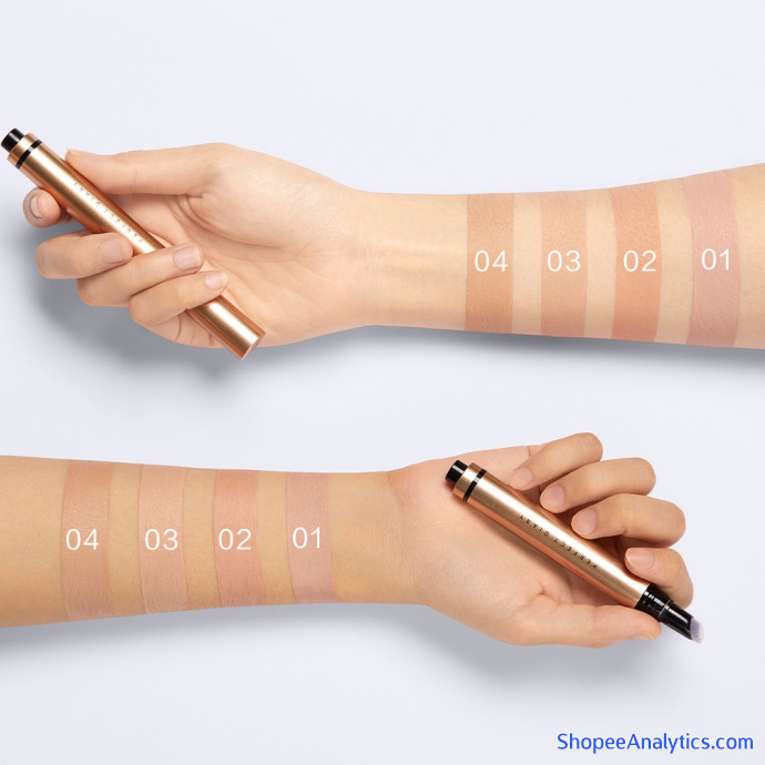 Nhấn phần nút phía dưới và lấy một lượng kem che khuyết điểm vừa đủ. Dù đầu bút chấm lên mặt và tán đều. Với lần đầu tiên sử dụng, nhấn bút nhiều lần để phần khí trong bút thoát ra bên ngoài.