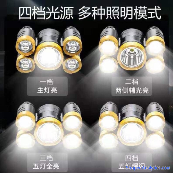 - Đèn pin đội đầu 5 bóng sử dụng 2 pin sạc 18650 dung lượng cao, với 6 chế độ sáng giúp người sử dụng có thể dùng theo từng mục đích mà tiết kiệm điện năng và kéo dài thời gian chiếu sáng.