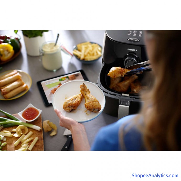 Bạn có thể chế biến hàng trăm món ăn với nồi chiên Airfryer. Chiên rán, nướng bánh, quay giòn, nướng thịt hoặc hâm nóng thức ăn. Mỗi món ăn đều thơm ngon đến miếng cuối cùng nhờ thiết kế hình sao và luồng khí nóng của Philips cho phép không khí lưu chuyển dễ dàng. Nồi chiên này giúp thức ăn chín đều từ mọi phía để bạn có thể thưởng thức bữa ăn hoàn hảo vào mọi lúc.