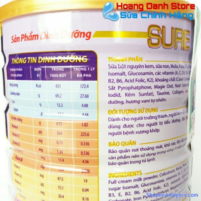 - Sữa gold beta sure có glucosamine là hợp chất hỗ trợ khả năng vận động,bôi trơn các khớp xương ,duy trì trạng thái khoẻ mạnh cho sụn và các tế bào xương