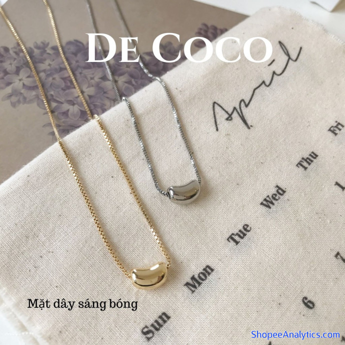 Vòng cổ nữ, dây chuyền nữ De Coco có 2 màu là vàng gold và bạc silver rất sáng và dày dặn, là hàng loại 1 cao cấp, không bị xỉn màu hay đứt gãy như các dòng giá rẻ phổ thông khác.