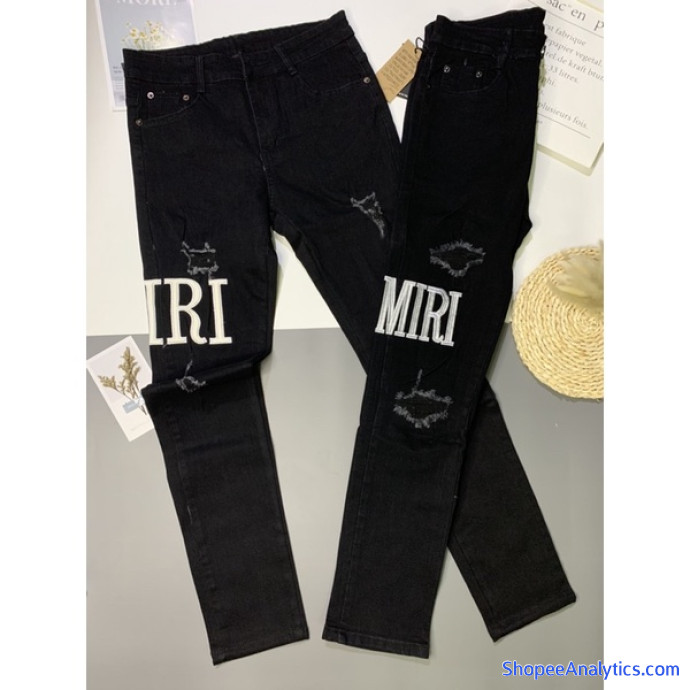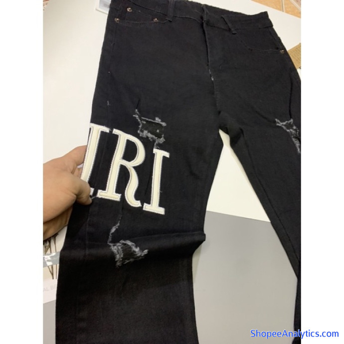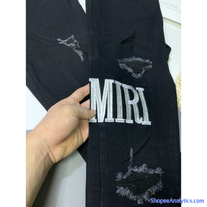 ✔️ Tên sản phẩm: Quần jean bò nam ống côn rách xước thêu chữ amiri