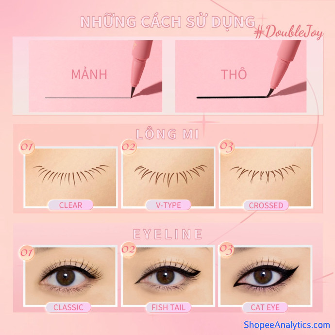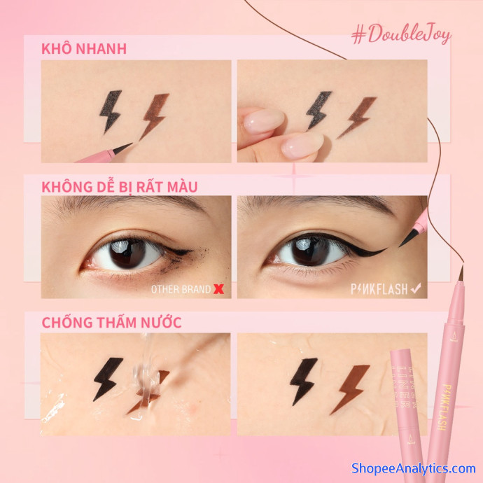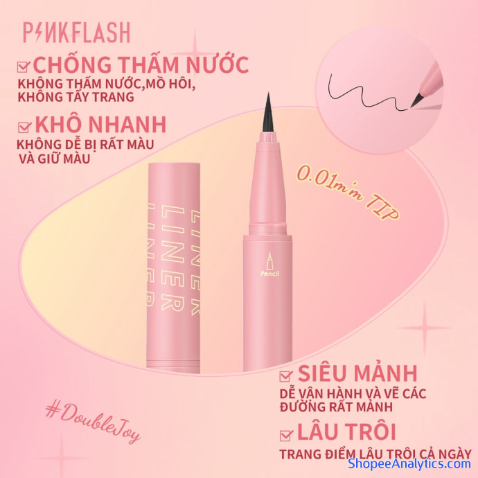PINKFLASH # Bút kẻ mắt đầu siêu nhỏ nhanh khô giúp trang điểm hoàn hảo lâu trôi tăng niềm vui gấp đôi