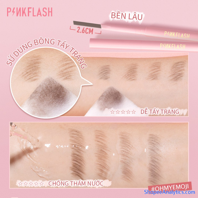 Tổng thể Bút Kẻ Lông Mày PINKFLASH OhMyEmoji Dễ Tán Chống Nước Giữ Màu Lên Đến 8 Tiếng Tích Hợp Đầu Cọ Chải Tiện Dụng được đánh giá trung bình 4.94/5 điểm dựa vào 589 đánh giá qua 1,274 lượt mua hàng (Cập nhập ngày 17/10/2021).