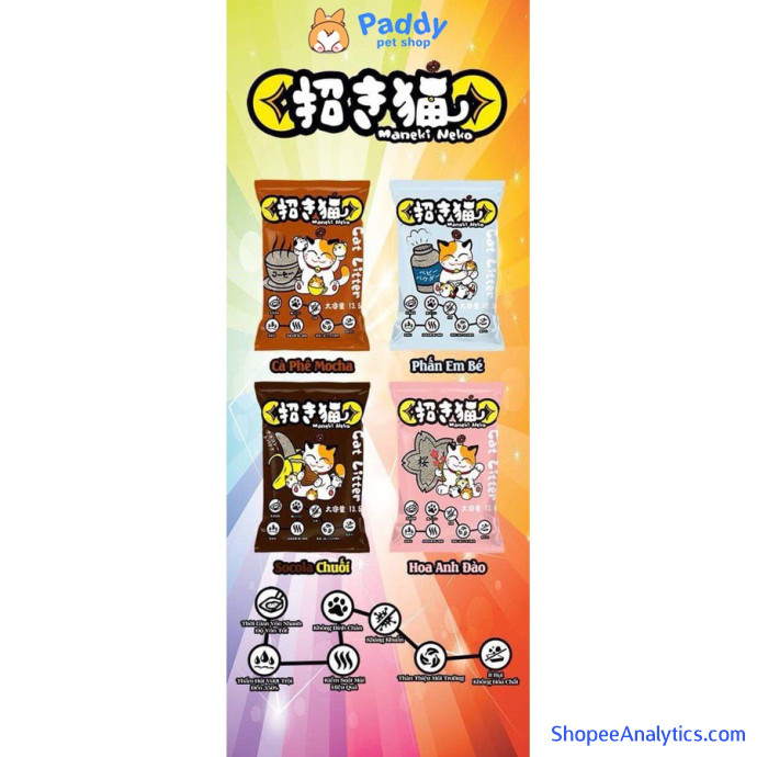Nghe qua cái tên thôi các bạn cũng có thể đoán ngay ra được sản phẩm cát vệ sinh Maneki Neko xuất xứ từ đâu rồi phải không nào! Maneki Neko chính là chú mèo thần tài của Nhật Bản và đã được dùng để đặt tên cho loại cát vệ sinh này. Được nhập khẩu từ Nhật Bản về nên chất lượng sản phẩm này hoàn toàn đảm bảo cho các bé mèo sử dụng.