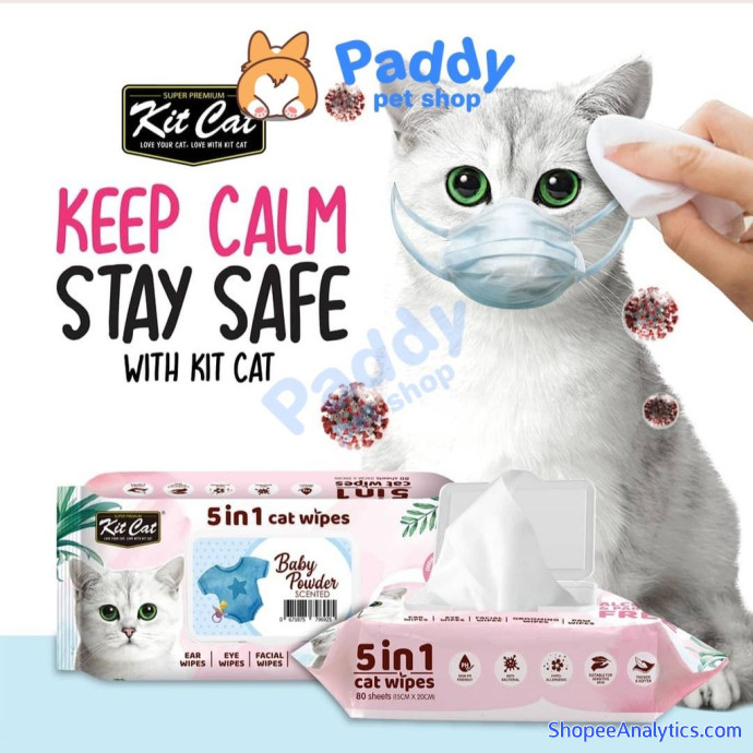 Tổng thể Khăn Giấy Ướt Kháng Khuẩn, Tắm Khô Cho Mèo Kit Cat (80 Miếng) được đánh giá trung bình 5.00/5 điểm dựa vào 63 đánh giá qua 177 lượt mua hàng (Cập nhập ngày 31/08/2021).