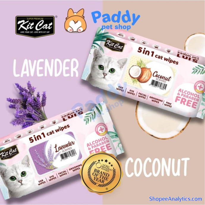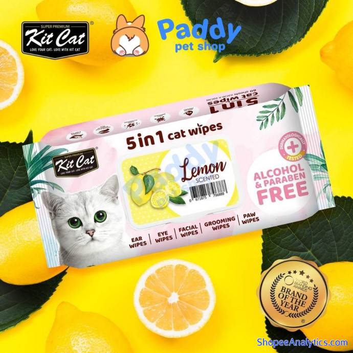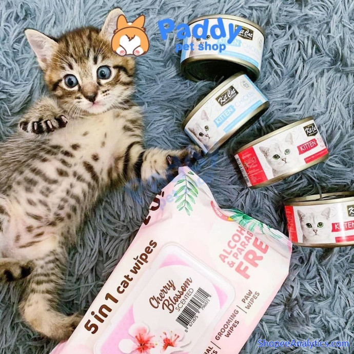 Khăn Giấy Ướt Kháng Khuẩn, Tắm Khô Cho Mèo Kit Cat (80 Miếng)