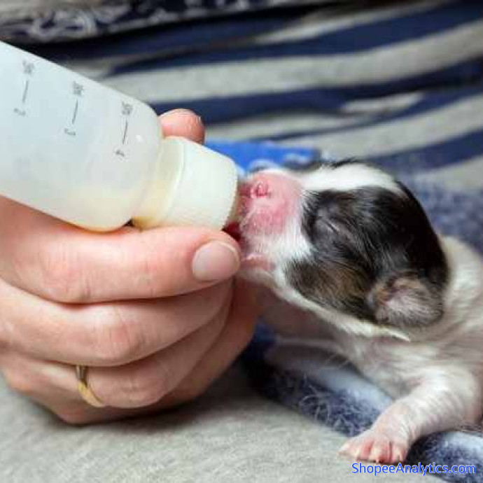 - Chó, mèo con dưới 1 tháng tuổi: hòa 1 muỗng cafe (5g) sữa với 20ml nước ấm, dùng bình cho bú ngày 4-5 lần.