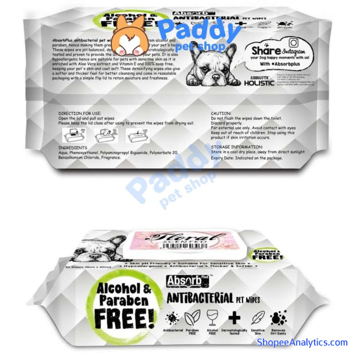 1. Absorb Plus Antibacterial Pet Wipes (Kháng khuẩn)