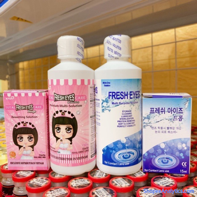Tổng thể Nước ngâm lens FRESH EYES nước rửa lens chai lớn 150ml, nước nhỏ, dụng cụ đeo lens chuyên dụng được đánh giá trung bình 4.94/5 điểm dựa vào 119 đánh giá qua 1,003 lượt mua hàng (Cập nhập ngày 20/06/2021).